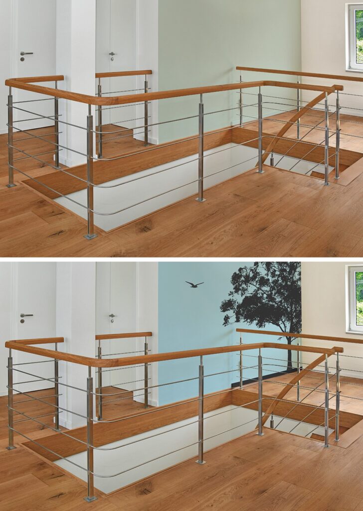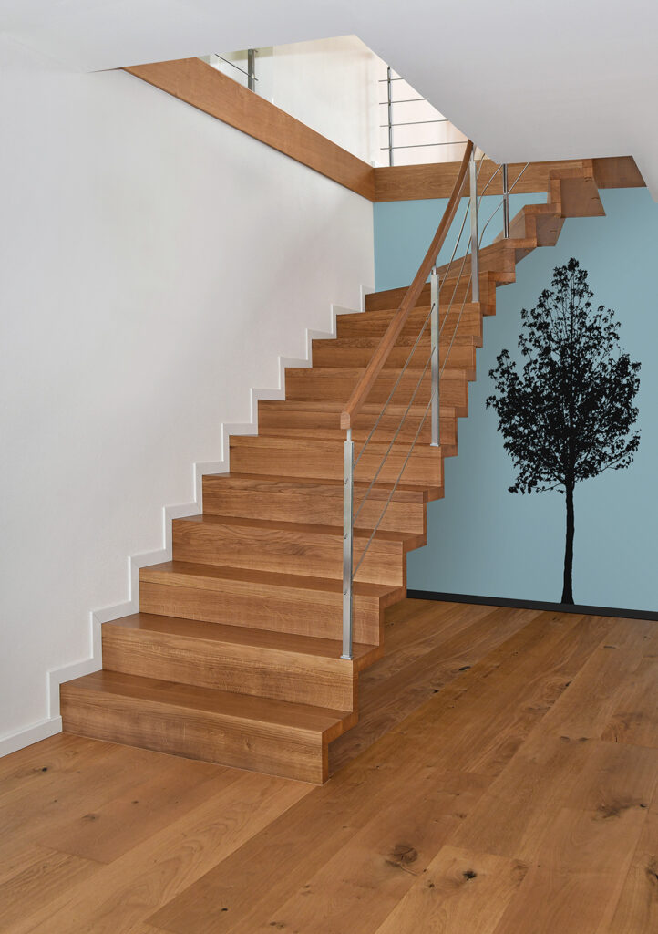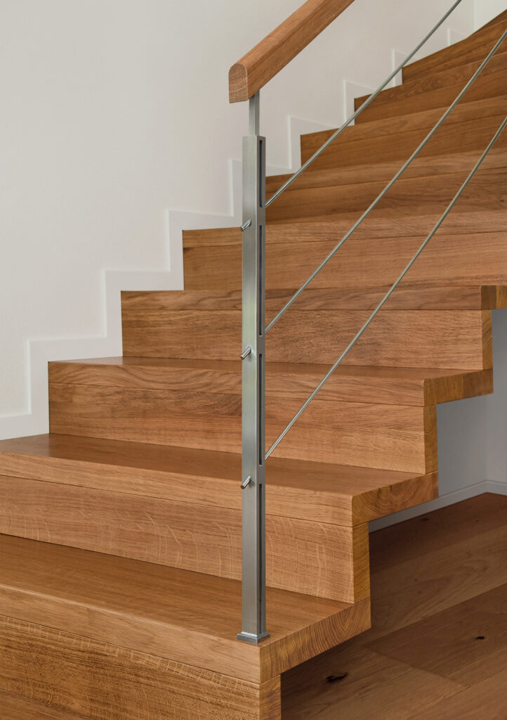MATERIAL: GEÖLTE EICHE, GELÄNDER AUS EDELSTAHL