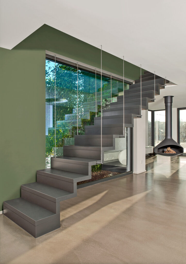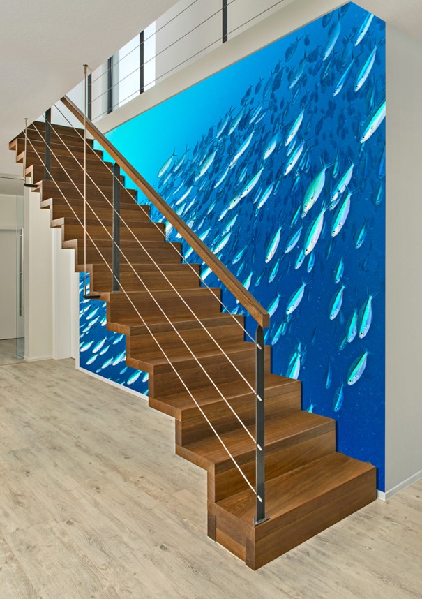 Faltwerktreppen sind eine moderne Interpretation der klassischen Treppe. Den Namen verdankt diese Treppenart ihrem Erscheinungsbild, dem Faltwerk, das seitlich an ein gefaltetes Blatt Papier erinnert. Mithilfe einer unsichtbaren Verbindung von Tritt- und Setzstufe kann dieser Eindruck technisch umgesetzt werden. Sie zeichnen sich durch ihre klare und minimalistische Ästhetik aus, bei der Stufen und Geländer in einer beeindruckenden, gefalteten Struktur verschmelzen. Die Stufen werden vorzugsweise aus Holz wie Buche, Esche, Eiche oder Ahorn gefertigt und mit Geländervarianten aus Stahl, Glas oder Holz ergänzt. So entsteht eine leichte und dennoch stabile Treppenkonstruktion. Die klaren Linien und offenen Formen lassen Faltwerktreppen in jedem Raum zum Blickfang werden.