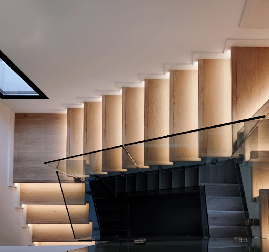 Kaum ein Material ist so vielseitig wie Holz. Es fühlt sich warm an, sieht natürlich aus und bringt Ruhe in den Raum. Ob Eiche, Buche oder Esche – mit der richtigen Behandlung wird jede Treppe ein Unikat. Kombiniert mit Glas oder Metall entstehen spannende Kontraste. Farbe und Licht tun ihr Übriges und machen Ihre Treppe zum echten Hingucker.